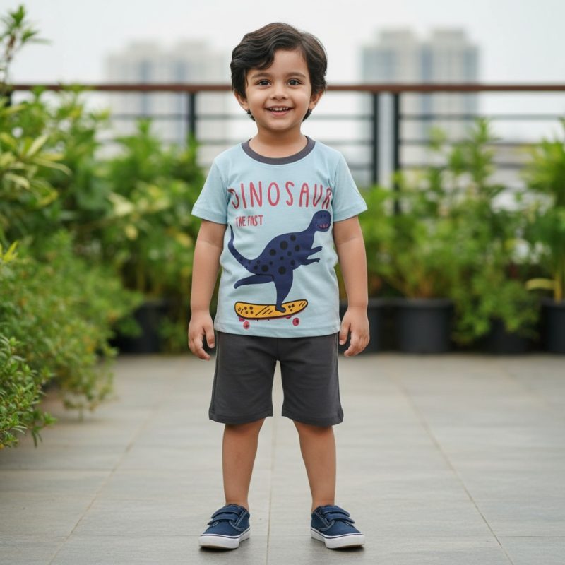 Kids T shirt & Pant Set (Sky Elephant)